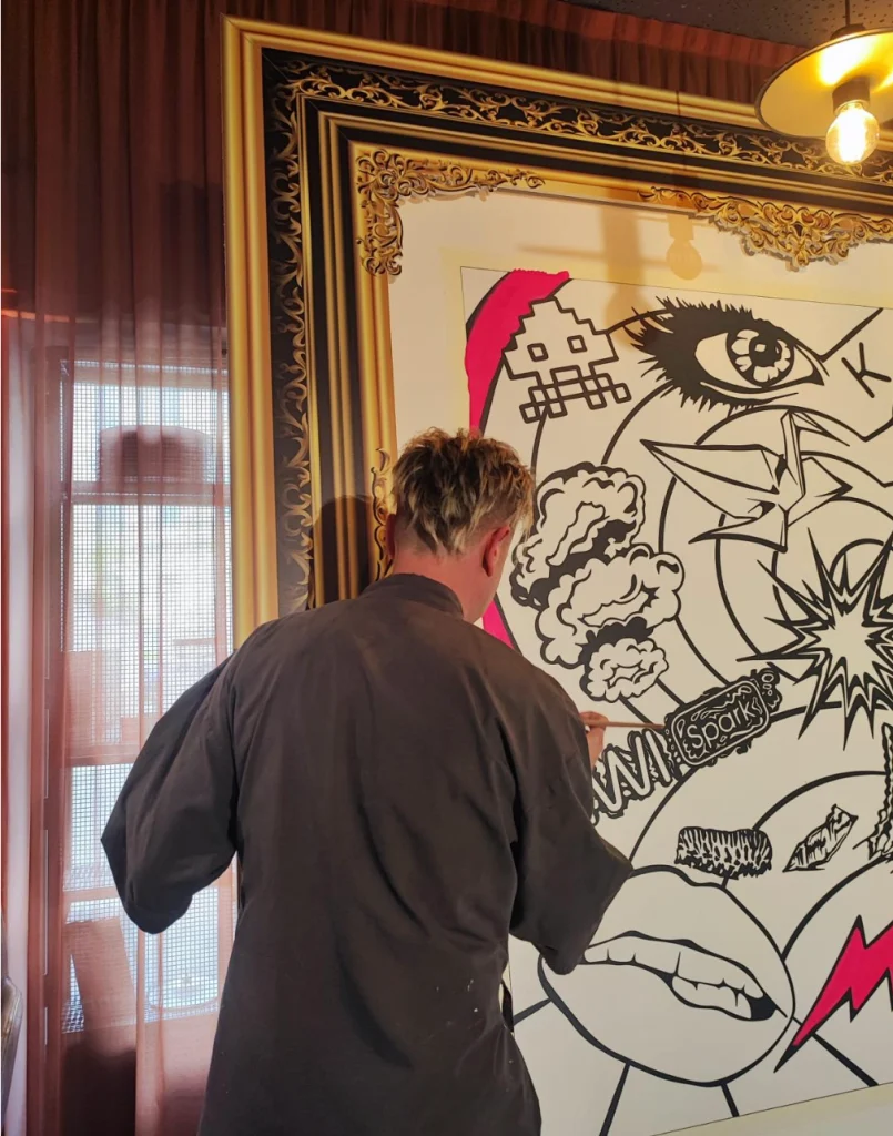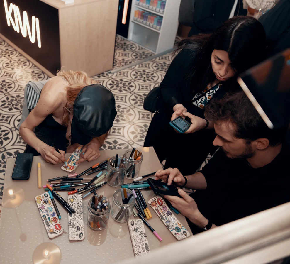 Arriving at Casa Matilda, guests were able to experience a new dimension. Indeed, the venue hosted artist Andy, known for his very strong eclectic spirit, who reinterpreted the concept of “Spark” through a dynamic artwork. Andy’s artistic performance began at 4 p.m. and ended at 9 p.m. During these hours, participants were able to witness and participate in the creation of a canvas artwork that captured the essence of “Kiwi Spark.”